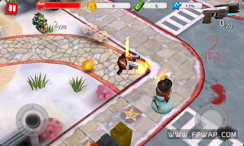 射击僵尸的时候,会发现一些设施也能摧毁,甚至在一些关卡中,玩家必须摧毁一定数量的设施才能过关。相反,如果僵尸太多,你还可以把它们当做掩体保护自己。这些设定很巧妙,极大的增加了游戏的可玩性。