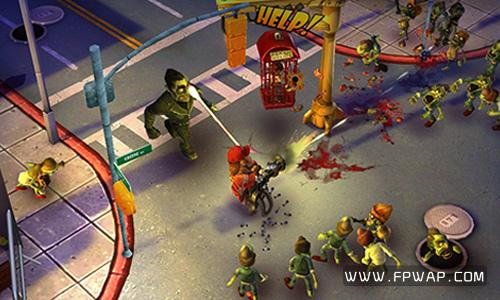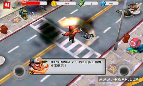 进入关卡后,武器就能更换了。不过,游戏中还设置了一些小道具。当玩家击毙僵尸后,可以在地上拾取随机掉落的物品,有时是直接使用的炸弹,可以瞬间秒杀一定范围内的僵尸;有时是棒球棒,虽然只能使用几十秒,但杀伤力很强。这些设定很有趣,也是游戏中一个卖点。