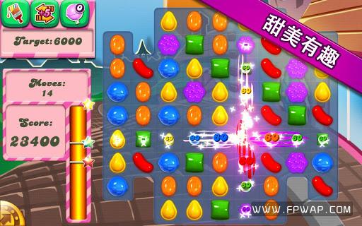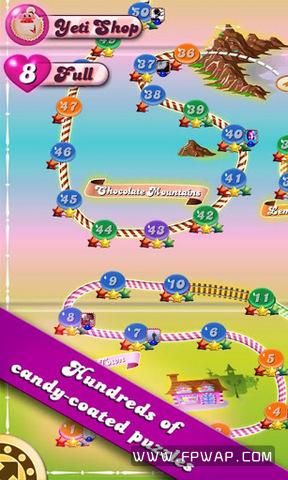 Candy Crush Saga《糖果粉碎传奇》是一款画面精美的三消游戏,游戏中玩家需要在一个行列中匹配三种糖果,从而通过一个有雪人和尼斯湖水怪的虚拟世界。在色彩艳丽的糖果仙境里,玩家要扮演有著纸片外型的小女孩“提菲”,在太妃糖先生的指引下游历十三个章节,挑战总计超过一百个以上的关卡。