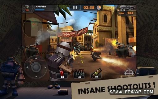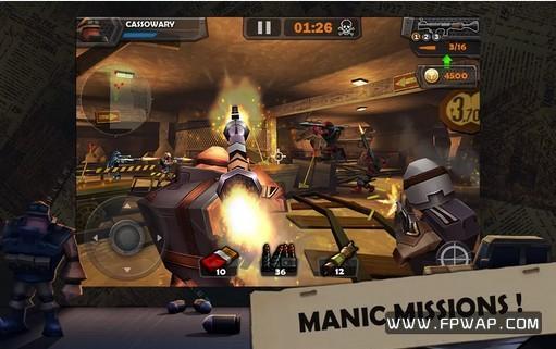 整体来说游戏的结构还是比较简单,在奖章和积分系统以外就剩下各种战斗地图了,不同的战斗地图都需完成不同的任务,比如限时生存、清除所有敌人,这类游戏虽然在画面和操作上还有些大作的底气,但在人物AI方面却要刻板许多,与之前在方砖人当中打僵尸的设定差不多,所有的敌人都会无脑地疯狂攻击目标,一波接着一波,让射击游戏失去了本身的战略意义,沦落为纯粹地为射击而射击,拼子弹拼武器拼血量,唯独与技术和战术无关。只要你射得爽,其他都是浮云。