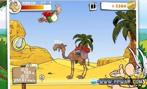 在将高卢人扇出去的时候不仅要控制力度,还要控制好角度等等,游戏中高卢人如果飞的很高甚至能接触到头顶的星空,飞的远则可以看到沿途各种不同的风景。而且游戏还有卡片收集系统,飞到空中的特定位置还能捡到各种有趣的卡片。对了,游戏还可以连接到微博,你可以和朋友们比比谁飞行的距离更远。