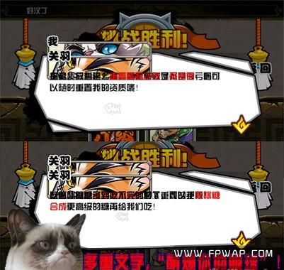 开场剧情可以说根本没有必要,生硬的切换不说,还给玩家造成错觉。既然你只能选择两个武将,还是固定一个阵营的,那么何必还要提什么群雄割据。为什么不针对提供的武将来设计剧情?哦对了,游戏里根本没有剧情!你是可以看到“很多很多”的对话,但是基本上以废话为主。