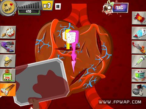 人生有四悲:如厕没带纸,表白变口吃,喜戴绿帽子,上班饿到死。饭点前的那一个小时总是那么的难熬,小编有个同事为了缓解饥饿的痛苦,已经通过看车祸现场的图片这种方式来遏制自己对于饭菜的渴望。对于这种重口味的行为,我只能说四个字:“请叫上我。”当然这种方法实质上是杀敌一千,自损八百,在你丧失饥饿感的同时,你也同时丧失了胃口。但是如果你爪机上装上了《疯狂外科医生3》,事情就变的不一样了。