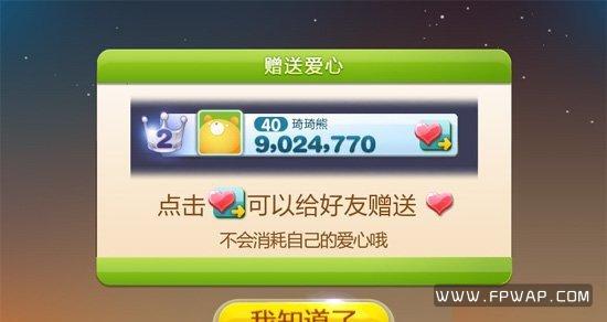 此外,玩家也可以通过点击“爱心”图标赠送爱心给好友,这样做自己是不会损失爱心的。在赠送的同时还可以发送消息向好友问好(也许说“挑衅”更贴切吧……),通过《天天连萌》这样的一款社交游戏可以让我们伟大的友谊更近一步。