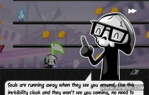 既然是休闲游戏自然操作也不会令人感到繁复,只需要控制死神的前进、后退和跳跃即可游戏。游戏中需要控制死神去收集四散在各地的灵魂,玩家只要控制死神靠近死神,角色就会挥舞自己的镰刀将灵魂收入囊中。收集齐全之后通过灵魂之门,传送至下一关即可。