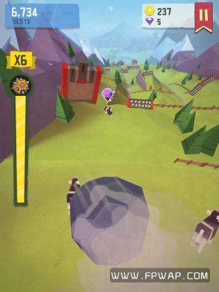不喜欢晃来晃去的,还能选择不同的操控方式一路往下滚动的路途中会有许多的树木、牛、士兵等等的障碍,都是这块巨石的眼中钉,只要辗过去就会有分数。不过,路途中也有许多的尖刺陷阱、落穴、追踪地雷,都会破坏这颗石头,因此在疯狂破坏的同时也别忘得要闪过这些致命危机。
