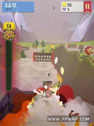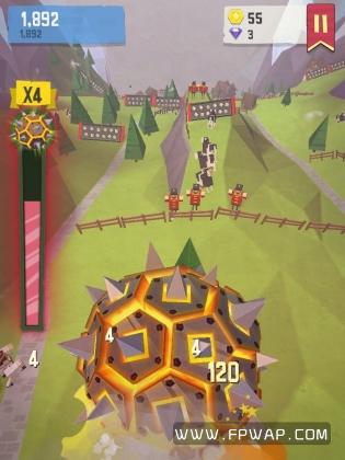 碰!的一下就爆炸了巨石获得分数的同时也会累积怒气值,只要怒气爆发,尖刺就会布满巨石,原本怕得要死的尖刺陷阱、无法摧毁的房舍,也能一路辗压过去。