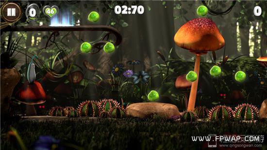 本作的主要色调是丛林的绿,其高水准的渲染效果和物理效果让整个游戏显得非常的“水润”,和煦的阳光还有翠绿的小草,其饱满的蘑菇让人赏心悦目。但是你发现我们的主人公蜗牛小哥看起来并不是那么的高兴,原因是它辛辛苦苦的手机的五彩蜗牛壳被别人抢走了。这也是为什么你看游戏开头他虽然是蜗牛但是连壳都木有。所以没有壳的小蜗牛看起来更加显得身娇肉贵,在面对来势汹汹的恶茬被装的天昏地暗,这一场蜗牛寻壳机就拉开了帷幕!