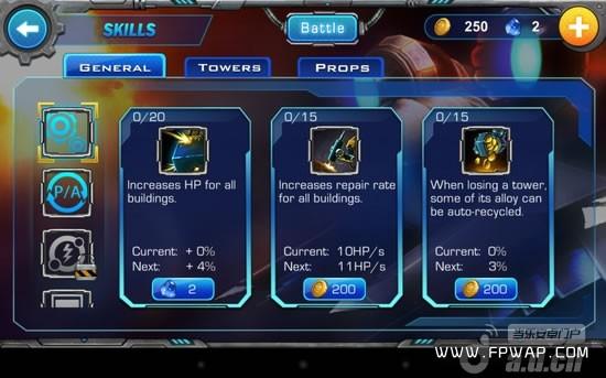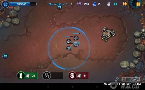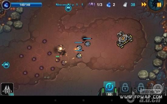 游戏以外太空的星球为背景,没有绿意葱葱,有的只是裸露着的各色岩石,整体画面有很高的科技感,特别是各种战斗机械的样式和花色,可谓是设计到了精致的地步。炮塔的火力效果和敌人的爆炸特效都是做的非常逼真,再加上各种机械运动时的“咔咔”声响,每一个环节效果都让人激动万分。游戏的任务是消灭敌人,保卫我们的基地。进入游戏之后,只需要根据系统的简单提示,在特定的位置放置好炮台,点击屏幕边沿附近的提示按钮,怪物就会向我们的基地袭来,我们的炮台,会自动攻击靠近的敌人。敌人的攻击,也会使我们的炮台受损,游戏中,除了可以升级防御炮塔以外,还可以修理受损的炮台,另外还有多种多样的高科技机械武器,各种高端大气上档次!!
