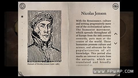 这款游戏给玩家带来的是一个具有深厚文化背景的故事。故事在横向跨度上既有东方的活字印刷术,也有西方的打字机,基本涵盖了历史上所有的造字阶段和过程。这些人文元素体现在游戏的章节划分上,通过一部部字体为书名的书籍展开,同时也体现在所有的场景画面之中,充满历史感的一幅幅画面透过黑色剪影呈现在眼前,文字、符号、图画以及历史人物都会一一展现,毫不夸张地说它就是一部关于印刷史的百科书,有兴趣且英文不错的同学可以耐心地读一读。