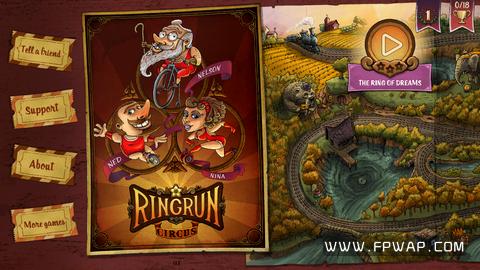游戏充满了卡通味道的视觉风格,拥有曼妙身材的美女,健壮阳光的大汉,虽然一脸花白胡子但依旧健步如飞的老头,相当的喜感逗趣。另外背景音乐也十分欢快,能让人仿若置身于真正马戏团中,连心情也在不知不觉变得欢乐起来。游戏主菜单上可以拖动画面浏览到风景各异主题鲜明的场景,和平常的休闲游戏一样,本作也是按照关卡形式划分,玩家的任务就是拿到钥匙,打开门锁前往下一关。