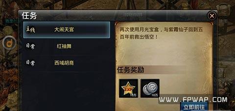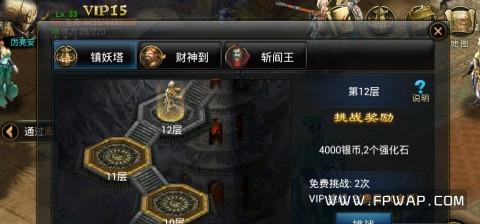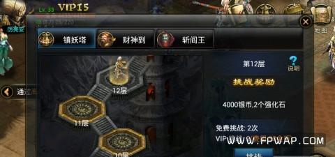 此外还有一些限时任务关卡及挑战任务锁妖塔,财神到,斩阎王。分别可以获得:银两,强化石。财神/阎王击杀礼包。