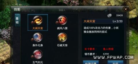 每个职业有5种技能,4种消耗魔法的技能,1种消耗金币的技能。技能的升级方式为自动,根据副本进度进行自动升级。大家这里要特别注意金币技能,很多新手都是在开始没有注意到技能左下方小小的金币2字,而白白消耗了大量金币。因此,金币技能大家还是要慎用。