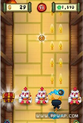 游戏的操作非常简单,只需要左右滑动屏幕控制武侠猫的行动方向,它就会自动发射飞镖攻击敌人,千万不要撞上敌人,否则游戏就会宣告失败。沿途还可以收集道具和金币,道具能够让你获得更强力的攻击效果,而金币则可以用来购买人物和装备。越到后面,敌人需要攻击的次数越多,如果距离不够杀死一个敌人的话还是老老实实躲开吧。