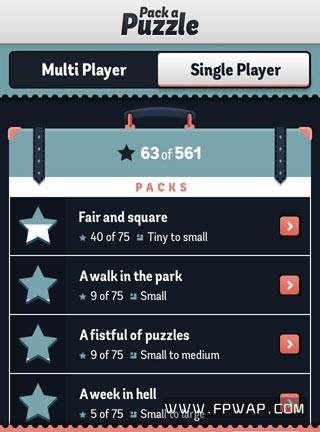 这款游戏虽然小巧,但是内容却是丰富的,游戏拥有单人和双人模式。其中单人模式有丰富的关卡,难度也是由浅入深。游戏还引入了星级评分,根据玩家完成关卡的时间,评定星级。这些关卡分作 7 个包,难度和限定的时间都不尽相同,不过后面的三个包必须用金币解锁。金币在多人游戏中可获得,或者只要连接 Facebook 即可获得 3000 金币。然而多人模式却是更为有趣的,玩家可以自己设计关卡,和朋友一起玩耍,完成时间最短的一方获胜。