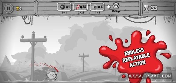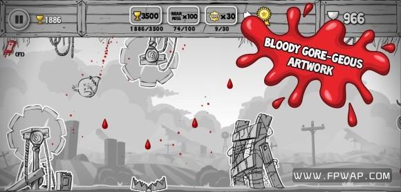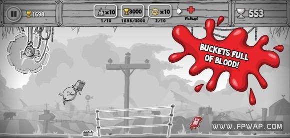 这款游戏的操作极为简单,通过点击屏幕,控制无头鸡跳跃,躲避障碍,收集血袋。在奔跑的过程中,无头鸡会持续掉血,需要收集沿途的血袋增加自己的血量,当不小心碰到障碍物的时候,会突然损失大量的血条。游戏中还有各种各样的道具收集,有助于完成游戏。这款游戏操作简单,但是不代表游戏简单,游戏中的障碍,设置精巧,迎面还会飞来菜刀,这是非常难躲避的。需要玩家掌握好跳跃的时机与连跳的节奏,否则一命呜呼的可能性是非常大的。