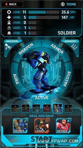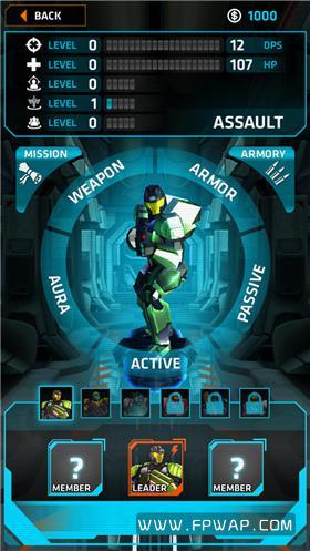 起初小编对于本作的人物出战机制并不了解,以至于一开始总是孤军奋战,挂的死去活来。事实上该作摒弃了传统卷轴射击的单一角色出击,允许玩家使用 1-3 名特种士兵一同参战,人设颇有些《HALO》既视感。可选的士兵种有狙击手、炮手、机枪兵、镭射兵等 6 个职业(其中3个需内购),三三两两之间的搭配可以按照玩家的喜好随意进行,不过要注意的是,这个三人小队中处在中间位置的为队长,使用拖动操作可以进行切换,队长的兵种不同,那么开始战斗之后所能够使用的大技也会有所区别。