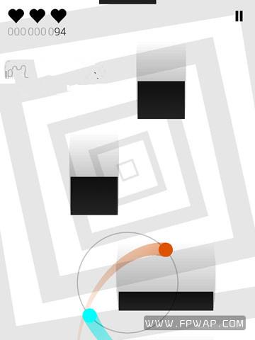 《二重奏》那种节奏更为倾向于前者,本质的音符组合只有寥寥几个,并不以“量”取胜,而它扬长避短的方法,则是让它们排列重组。迎面飘来几个排列有序的方块,抑扬顿挫的节奏让你在适当的时机,触屏作出反应。左触屏向左旋转(逆时针),右触屏向右旋转(顺时针)。