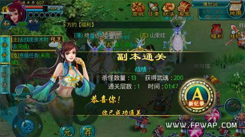 《醉西游》除了操作上不需要技巧外,就连副本任务也比较简单(可能是小编只玩到了前期的原因)。30级左右的副本轻松无压力,每次打通副本后,都是A级哦!