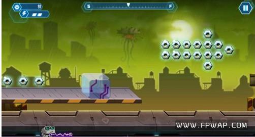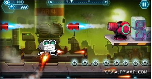 游戏的操作方面非常简单,只需要点击屏幕左右就可以控制小机器人跳跃和射击,只是有些坑爹的是在屏幕中并没有用虚拟按键的方式显示出来控制按键,如果是刚接触的玩家会非常被动,完全找不到按键在哪里,理所当然就很难知道到底怎么去控制机器人的闪躲。
