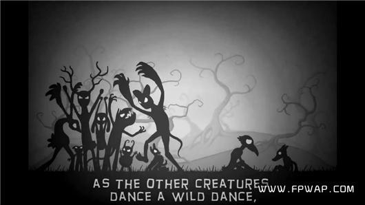 除了充满诡异的画面和配乐,人物设定上也是剑走偏锋,主人公不是人类,也不是纯种的外星生物,而是能够直立行走的乌鸦人和狼孩。从剧情上可以了解到,像它们这样的同类还有很多,大都生活在森林深处,直到有一天,乌鸦人与狼孩想要去城市游历一番,不过一路上不仅有诸多阻挠,而且还有一个神秘恐怖的黑影紧随其后,为了不被其吞噬,它们只能互帮互助向前狂奔。