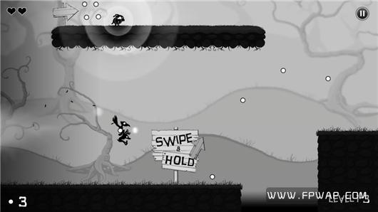 或许你会认为该作应该是跑酷类型,其实这是一款不折不扣的冒险闯关游戏,30 多道关卡谈不上十分丰富,不过它们可都不是“好惹的”。与一般横版闯关不同的是,本作全局采用了手势操作,例如向上划动为跳跃,跳跃时按住屏幕越久跳的越高;向前划动可以让两个小伙伴使出突刺技能来破坏诸如藤蔓、铁丝等障碍;左右划动可以让其转向,这看似繁琐的操作设定,实际玩起来倒也流畅。