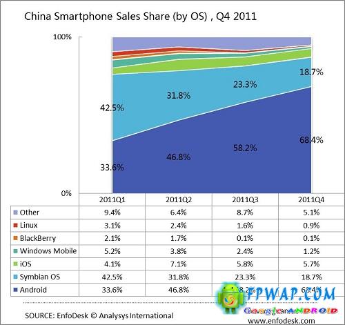 据调查公司易观国际Analysys International的报告指出,Google Android系统于去年第四度时已成为中国最多人使用的智能手机作业平台。
