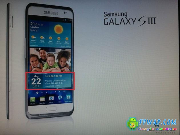 其实早在以前有外国媒体透露三星已经发出过邀请函,上面显示三星将会在 5 月 22 日于英国正式发佈新一代旗舰手机 Galaxy S III,根据目前的消息指 Galaxy S III 拥有 4.65 吋 720p 显示屏,同时搭载了 32nm 四核 Exynos 处理器,支持 4G 网络,搭载了Android 最新的 4.0 系统。至于如有 Galaxy S III 最新的消息,必定向各位读者通知,谢谢支持本网站各小编。