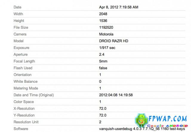 根据外国消息透露,Picasa 网站上有人发表 摩托罗拉公司 拥有 HD 萤幕的新型智能手机,而新型的手机名字确定为 Droid Razr HD ,除了拥有 HD 萤幕外,更运行 Android 4.0 最新的系统,除此之外,有日本科技网 Blog of Mobile 消息透露 Droid Razr HD 型号确定为 XT926。目前小编对 Droid Razr HD 的规格并不清楚,而有外国消息指是更早前曝光过的 Droid Fighte。