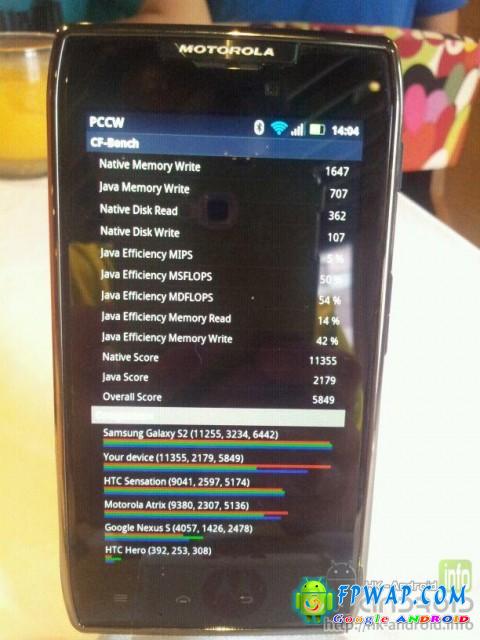 Razr Maxx 的效能比 Motorola 上代机王 Atrix 高,综合分数达 5849,直逼 Galaxy S II。