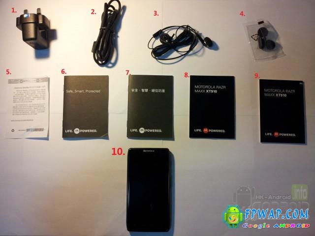 相信拿开盖子后第一件看到的东西就是佔了超过一半空间的 Razr Maxx 了。