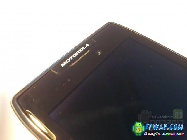 正面顶部设有前置镜头、距离感应器及光度感应器,另外 MOTOROLA 字样印在手机上方,感觉既自然又高科技。