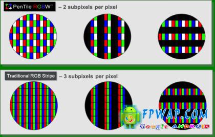 什么是 Pentile 萤幕?以下有一张图片,能够简单解析与传统 RGB 萤幕的分别。