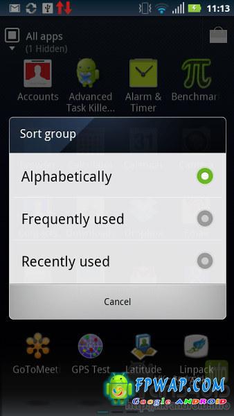 目录容许改动 Apps 的排列方式,分别有按字母顺序排列、使用频率及最近使用,三个选项。