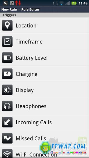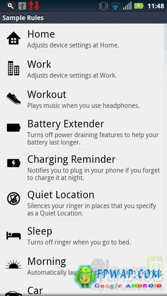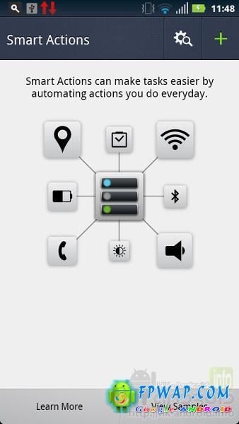智慧动作容许用户透过指定规条来控制手机,应用程式可以在某些情况或时间下做某些动作,详情如下: