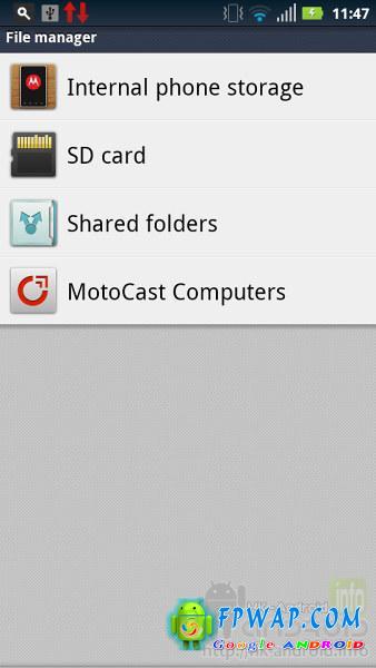 Motorola Razr Maxx 内建一个叫“档案”的应用程式,其实就是一个档案总管应用程式。用户可以轻鬆查看在手机里的档案,无需为下载档案后无法查看而感到烦恼。