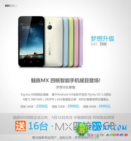 一个月前,魅族发佈了旗下首台四核手机 MX 四核版,当时的消息指 MX 四核版将在六月上市,今日就有可靠消息证明这点。据消息,魅族会在 6月9日开放 MX 四核版的预售,6月11日正式出货。手机分两版本发售,分别是售 ¥2999(HK$3,099)的 32GB 版,及售¥3999(HK$4,099)的 64GB 版,跟双核版上市时的售价一样。至于规格方面,相信大家看完会认爲¥2999(HK$3,099) 是超值的售价!