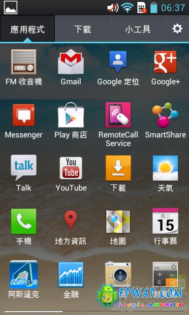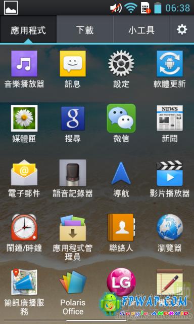 此外,LG Optimus L7 的界面拥有 Android 4.0.3 的特色,把小工具都带到目录里,而且 LG 额外分出“下载”分页,用户可轻易查看所下载的Apps。