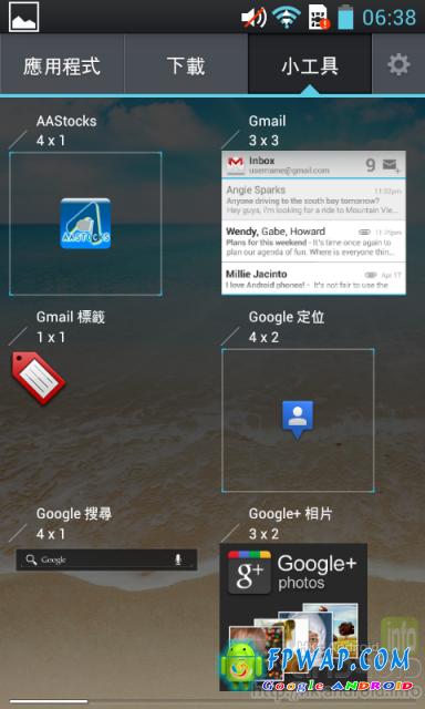 Android 4.0 的一大特色,用户可在目录直接选出 Widgets。