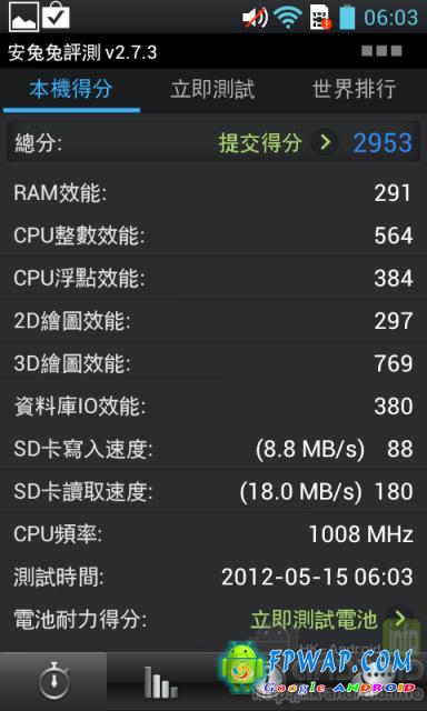 手机只採用单核心处理器,有接近 3000 分的成绩也算是不错的了。