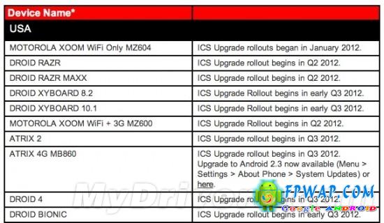 8.2 吋 / 10.1 吋的 XYBOARD、智能手机 DROID BIONIC、DROID 4 等将会稍迟至第三季才能获得升级。