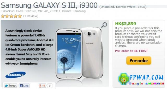 虽然消息未经证实,但香港 Expansys 近日展开了 Galaxy S III 的预售计划,贩卖的是 16GB,解锁版 Galaxy S III,分鹅卵石蓝、大理石白两色发售,售价同样是 HK$5899,买家可以于 6 月的第一个礼拜内取货。虽然 HK$5899 的售价贵得离谱,甚至比传言是官方售价的 HK$5688 贵,但却能抢先一步使用机皇 Galaxy S III,值不值得,真的见仁见智。有兴趣预订的朋友,可以到 Expansys 网站了解详情。