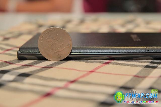 Optimus Vu 的机身极薄,只有 8.5mm,连一元硬币的一半高度也没有!此外,手机侧面拥有银边装饰,尽显高贵。