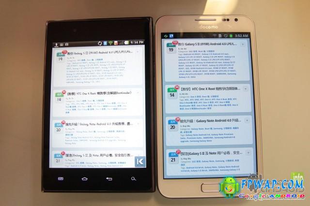 网页显示方面,由于 Optimus Vu 只有 768p,显示范围较 Galaxy Note 吃亏,但却受惠横萤幕,看得非常舒服。
