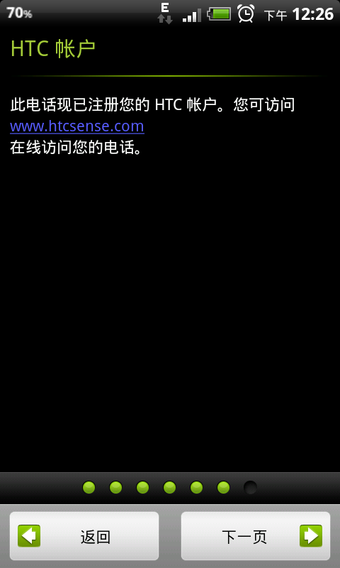 初次刷机的设置向导,在新的rom中添加了一个htcsense账户,大家都应该有所耳闻,htc自带的账户将会提供从短信同步到手机防盗定位等一系列服务,我想这个是新sense最大的更新之处