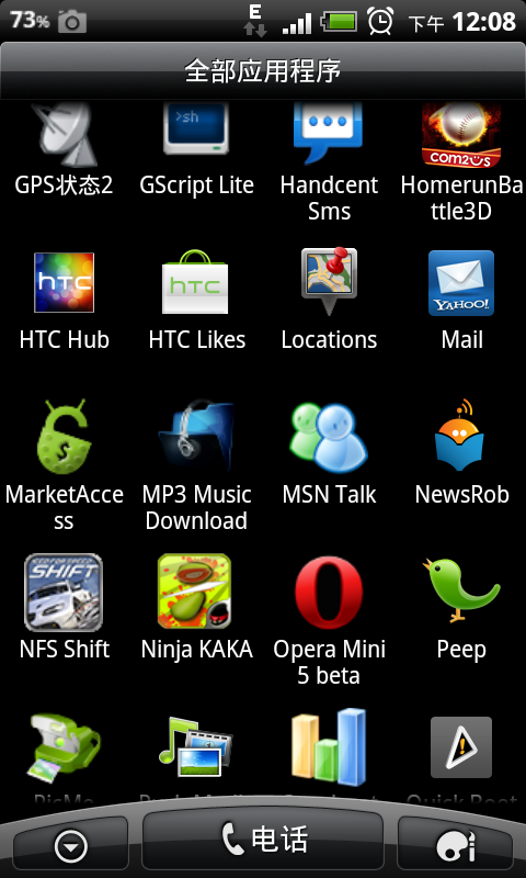 如图可以看到Htc Hub,Htc Likes 以及Locations和Pushmedia还有Htc自带的电子书阅读器以及来电防火墙