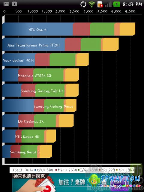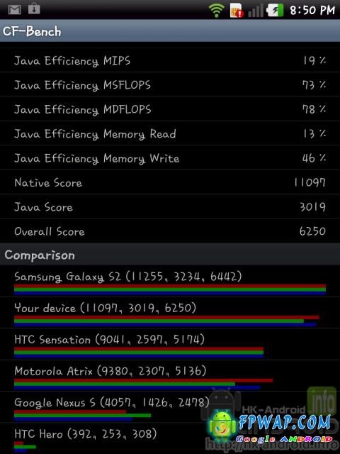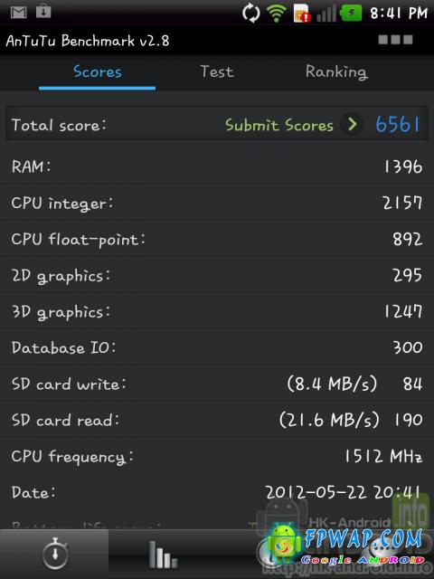 虽 Optimus Vu 採用 Adreno 220 GPU,但 NenaMark v2.2 分数奇高,击败其他採用相同处理器的手机。