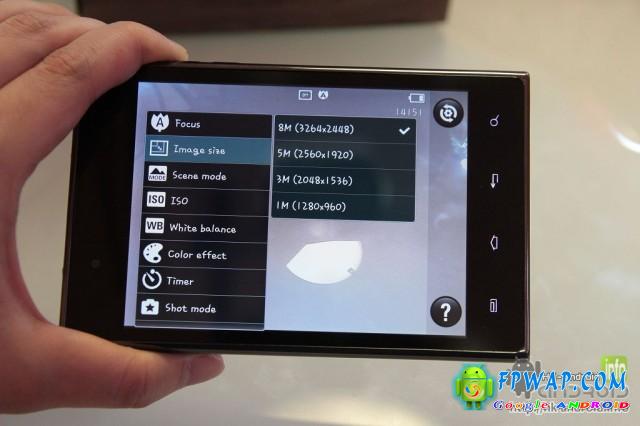Optimus Vu 的相机界面条理分明,设定均有良好的分类,并支援多个专业设定,用户可以按需要作调教。此外,Optimus Vu 採用 4:3 萤幕,就算是拍全像素照片,仍能够完全使用整块萤幕,不会留有黑边。