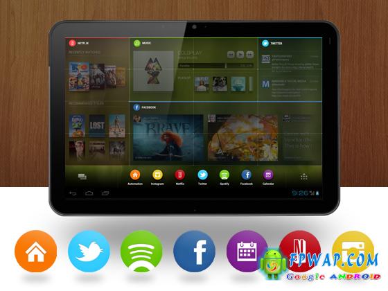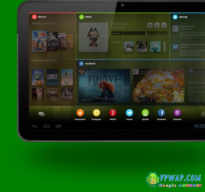 第一眼下的 Chameleon 的主页,你可能已经发现内置的 Widgets 跟平时的不同。是的,普通 Widgets 是不可以在 Chameleon 上使用,在上面使用的只有原生 Widgets,有最基本的时钟、日历、天气、播放器、RSS 阅读器、Gmail 等等,亦包括热门的 Facebook、Twitter、Instagram、Google Drive(还有大家都用不到的 Netflix)。未来亦支援用 HTML5 编写的第三方 Widgets,但暂时就只有原生的就是了,而且可以自己改动大小。设计上感觉到他们为平板而放大 Widgets 及 增加不少手势上的操纵,无疑可以善用 七吋起跳的平板(DELL STREAK:?),始终现时平板 Launcher 上的设计都偏小 和 未尽用大萤幕的优势。