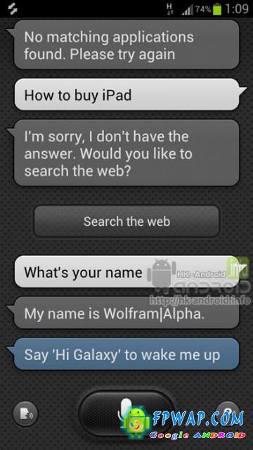 拿到 Samsung Galaxy S III 的用户是否已经急不及待开始试用呢 ? 小编昨天就开始对 Galaxy S III 开始作出深度研究 . 由其是智能对答的 S Voice 进行了解 . 如事者 , 小编就开始了一小时的「深情对话」, 由南至北 , 天文地理都聊一遍 (编按 : 死宅男….) , 把「妹」当然不忘问名字 . 还没问之前 , 小编以为他会回我「my name is s voice」 , 原来都错了…… 他竟然对我说她是 「Wolfram Alpha 」. 小编当场激动了!! 「Alpha」这名字太美了~~~~ 正当陶醉之际 , 突然!! 脑袋裡有一个东西就一下闪过 , Wolfram Alpha 不就是 智能问答系统 - wolframalpha.com ?? 然后小编就上了 Wolfram Alpha 网站 , 打下刚才的问题…. 结果……. 原来 S Voice 是读取 Wolfram Alpha …… 幻想当场破灭了……